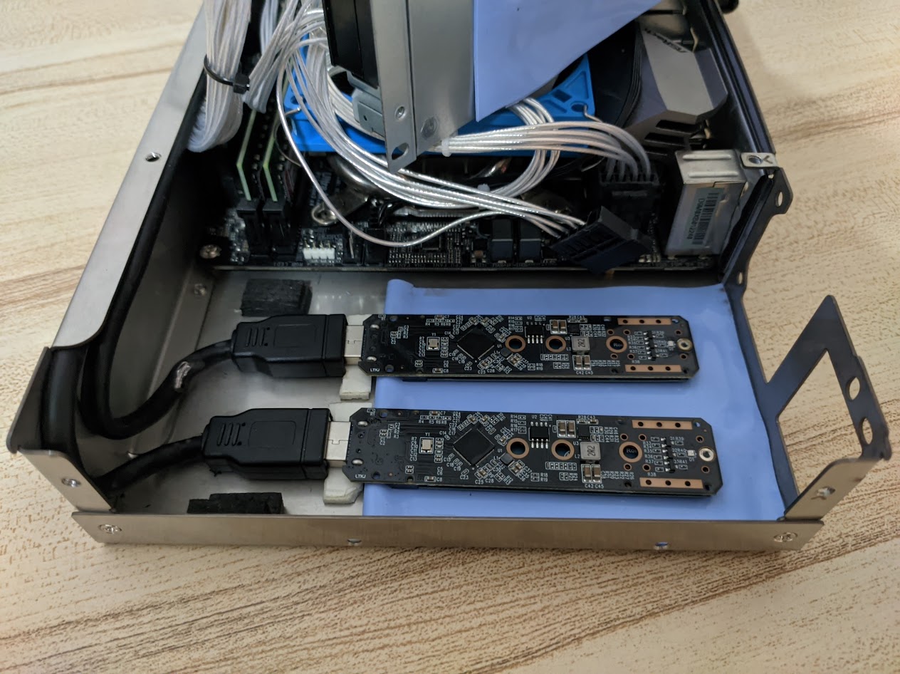 通过加装两个USB转M.2裸版,加上主板自带的两个M.2硬盘位,给小机箱塞进了四个M.2硬盘。固态硬盘真贵。Chia和Filecoin矿难之后仍然很贵。祝愿铠侠、西部数据、希捷等硬盘厂商能不断取得技术突破,同时祝愿国内的硬盘厂商继续飞速发展,超越国外厂商,圆全天下 data hoarder之梦。